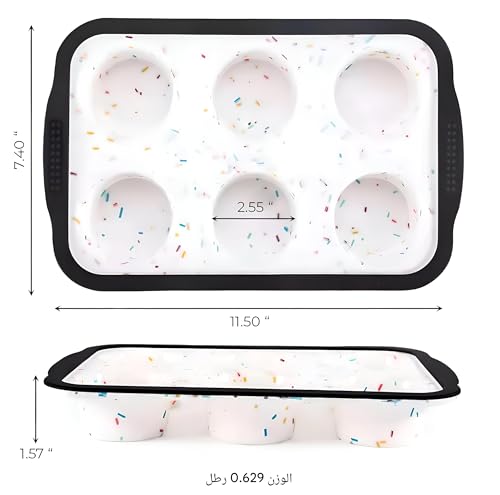 - استمتع بالخبز الآمن والعملي بفضل صينية المافن والكب كيك المصنوعة من السيليكون مع 6 تجاويف، مصممة بمقابض معززة من الستانلس ستيل لسهولة الإمساك وسطح غير لاصق لتحرير إبداعاتك المخبوزة دون عناء وتنظيفها دون متاعب.