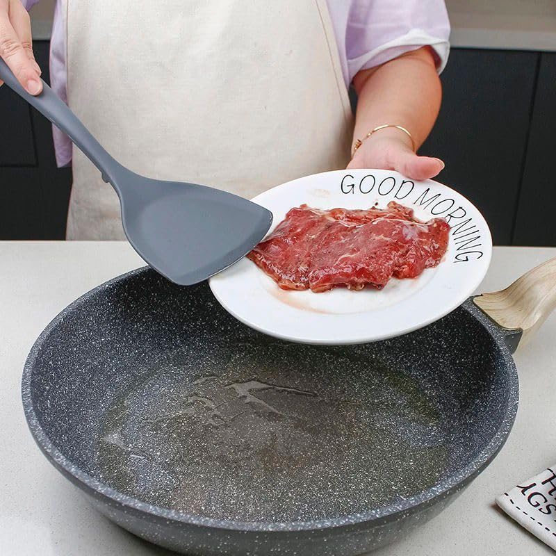 Generic - Silicone nonstick spatulas, Food Grade Slotted Turner, Spatula for for Fish, Soup High Temperature Resistant Kitchen Utensils - Cooking Spoon Ladle for Soup, Sauce, Cooking, Salad Dressing Grey (01)