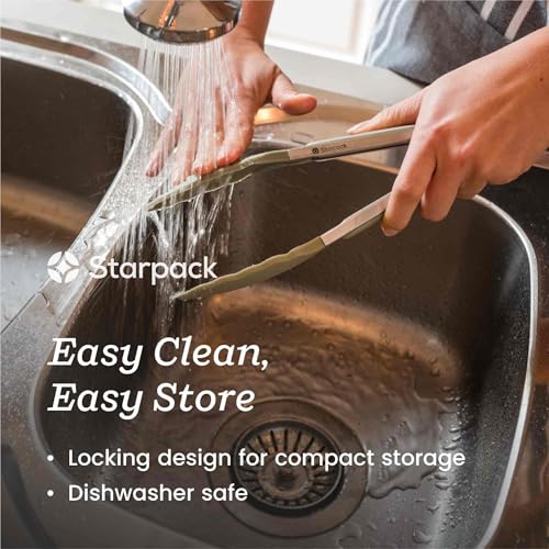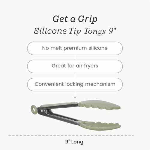 - Get a Grip 9 Inch Tongs: 9" Handle (10" including lock). Easy clean, easy store - dishwasher safe or just wash with warm water, our silicone tongs lock closed for easy storage.