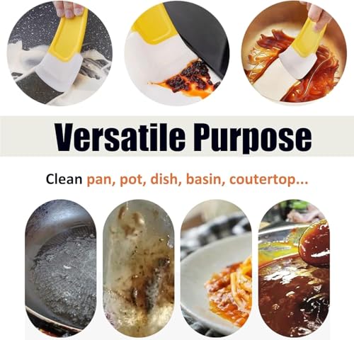 - 【All-in-One Kitchen Helper】 This flexible silicone scraper removes stuck food, dough, butter, and spills effortlessly. Ideal for scraping pans, bowls, non-stick cookware, and countertops—perfect for cleaning, cooking, and baking tasks.