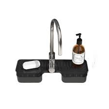- VERSATILE DESIGN: Black silicone faucet mat wraps around your tap to catch water drips and splashes, keeping your sink area clean and dry whilst providing convenient storage for dish sponges and soap