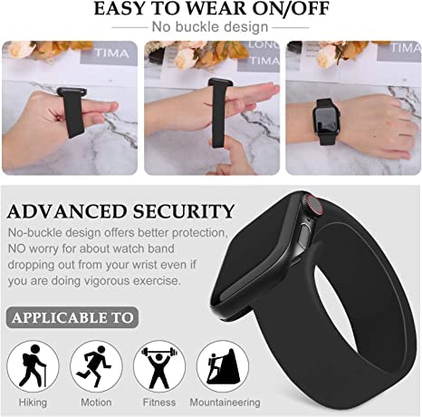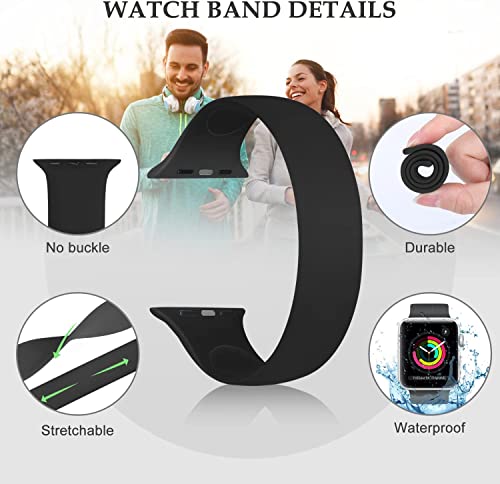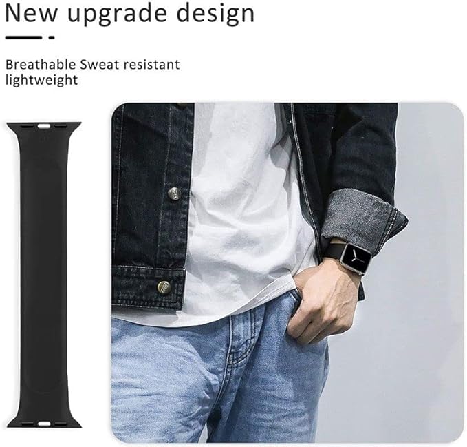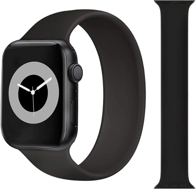 Generic - Silicone Solo Loop Elastic Band Size 42/44/45/46/49 mm Soft Stretch Sport Replacement Strap Compatible With Apple Watch Series 10/9/8/7/6/5/4/3/SE/Ultra - Black (X Large -180mm)