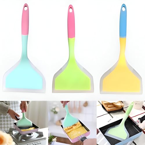 Generic - Silicone Spatula - Extra Wide Flexible Non-Stick Cooking Tool Ideal for Turning Pancakes, Eggs, Fish, Omelets, and Crepes with Comfortable Handle and Color Options (piece-3)