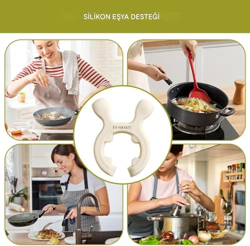 • قم بتثبيت حامل الملعقة السيليكون على يد المقلاة أو الطنجرة بسهولة.