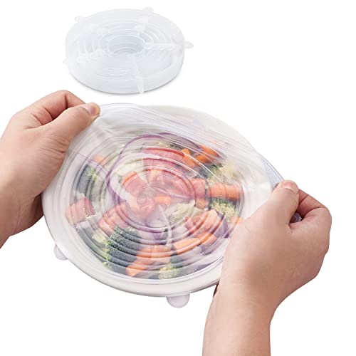 Opaceluuk - Silicone Stretch Lids,Reusable Durable and Expendable 6 Pack Multi Size Seal Lids,Eco-Friendly Stretch Container Keep Food Fresh for Bowls,Pots,Mugs,Food Covers(Clear)