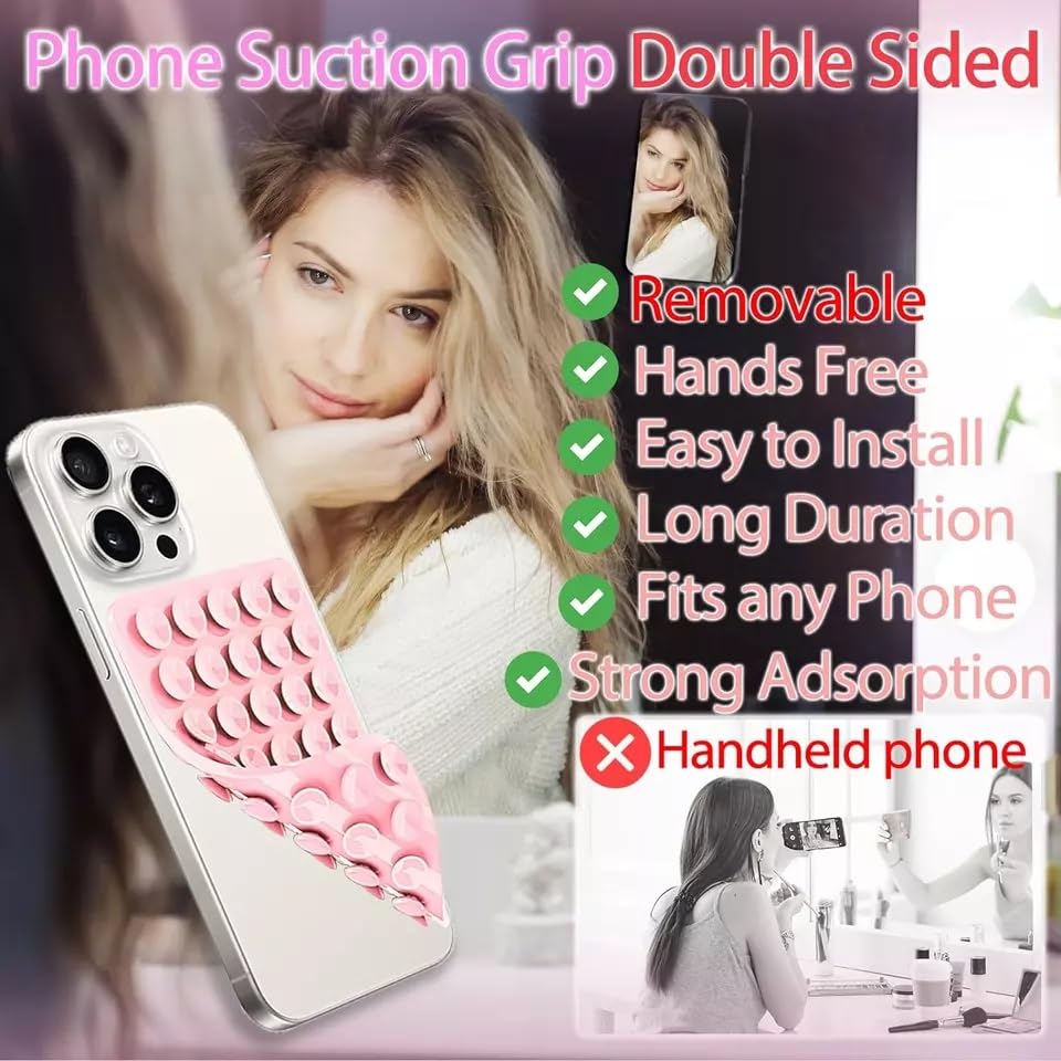 Epivol - Silicone Suction Cup Phone Case Mount Double-Sided, Detachable Mount Silicon Sticky Phone Stand for iPhone and Android, Hands-Free Strong Grip Holder for Selfies and Videos- Black