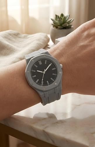 Generic - ساعة سيليكون - ساعة رياضية متينة مقاومة للماء للجنسين مع اطار ثماني الاضلاع ومينا بنمط الوافل، تجمع بين الموضة الكاجوال وأداء كوارتز موثوق لراحة طوال اليوم.