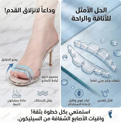 - The transparent and invisible silicone material is made of clear and pure silicone gel that completely disappears under your fingers, making it the perfect choice for use with exposed evening shoes and summer sandals without affecting your look elegance.