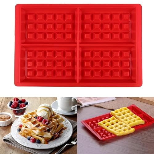 Generic - قالب سيليكون للوافل- مكون من 4 تجاويف للكعك والشوكولاتة والحرف اليدوية والحلوى والصابون سيليكون عالي الجودةصالح للطعام، معتمد من إدارة الغذاء والدواء الأمريكية، مقاوم للحرارة حتى 450 درجة