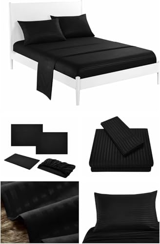 Generic - Silk Duvet Cover - 3 Pieces - Stripe - Consists of Comforter and 2 Pillow Cases 50 * 70 (black, 240 * 260)