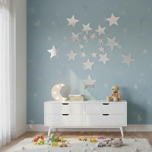 - Stylish Star Design: Set of 10 silver star-shaped mirror pieces that add a modern and elegant touch to any wall