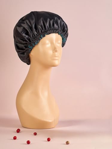 Generic - Silk Satin Bonnet Sleep Cap Wide Double Layer Comfortable Elastic Headache Free Premium Quality Keep Your Hair Frizz Free (Black)