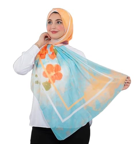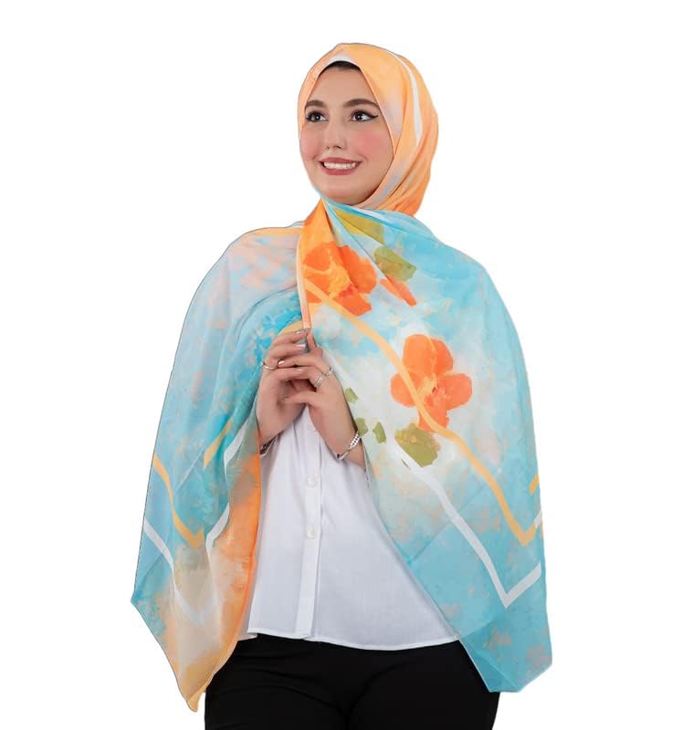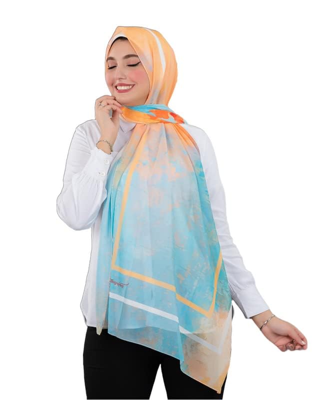 Generic - Silky Way Scarf trquase and orange Chiffon crepe Women hijab - SW-00205