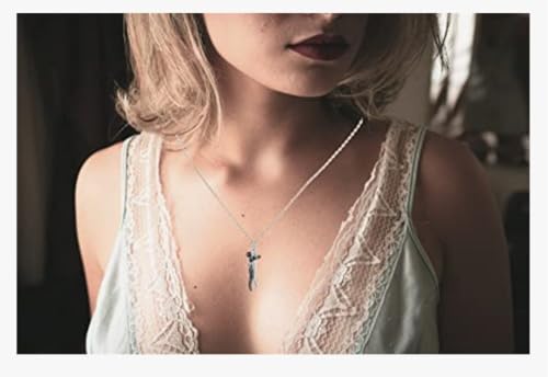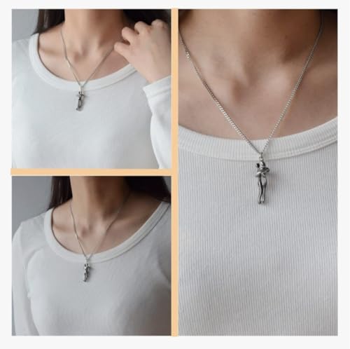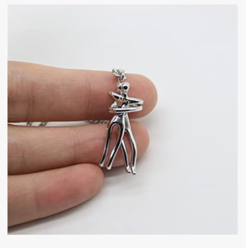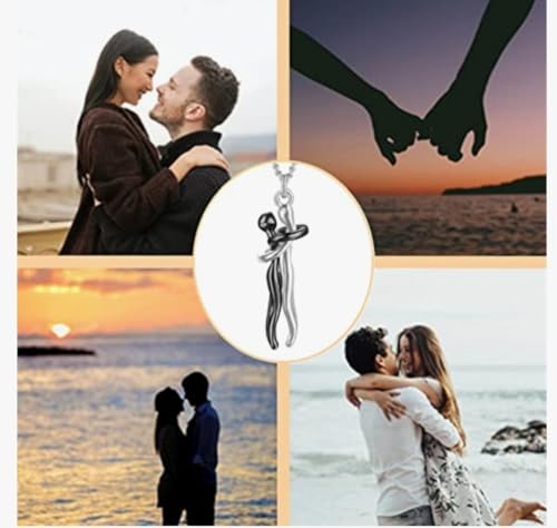 Generic - قلادة عناق الاحباء الفضية والسوداء، قلادة فنية عصرية للنساء مع سلسلة