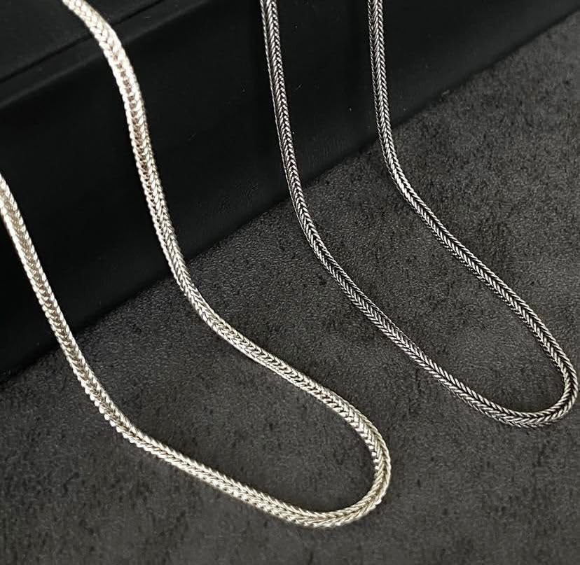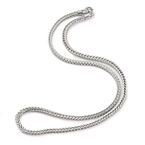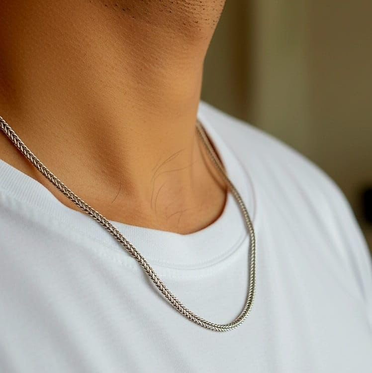 Generic - Silver Braided Wheat Chain Necklace with Lobster Closure, Men's Jewelry