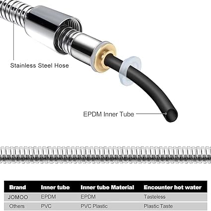 - Flexible hose: long extendable hose allows freedom of movement during the shower