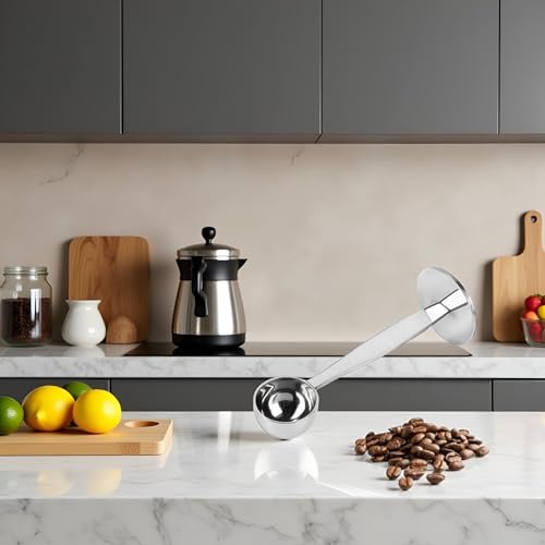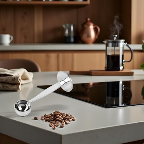 ZhangyiHot - مغرفة قهوة فضية محمولة من الستانلس ستيل 2 في 1، مغرفة قياس مسحوق القهوة، ادوات ملاعق القهوة والشاي والاسبريسو، ادوات المطبخ وتناول الطعام