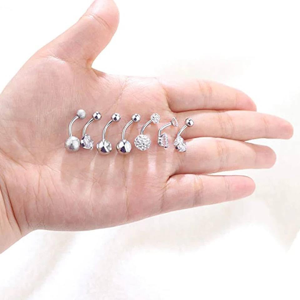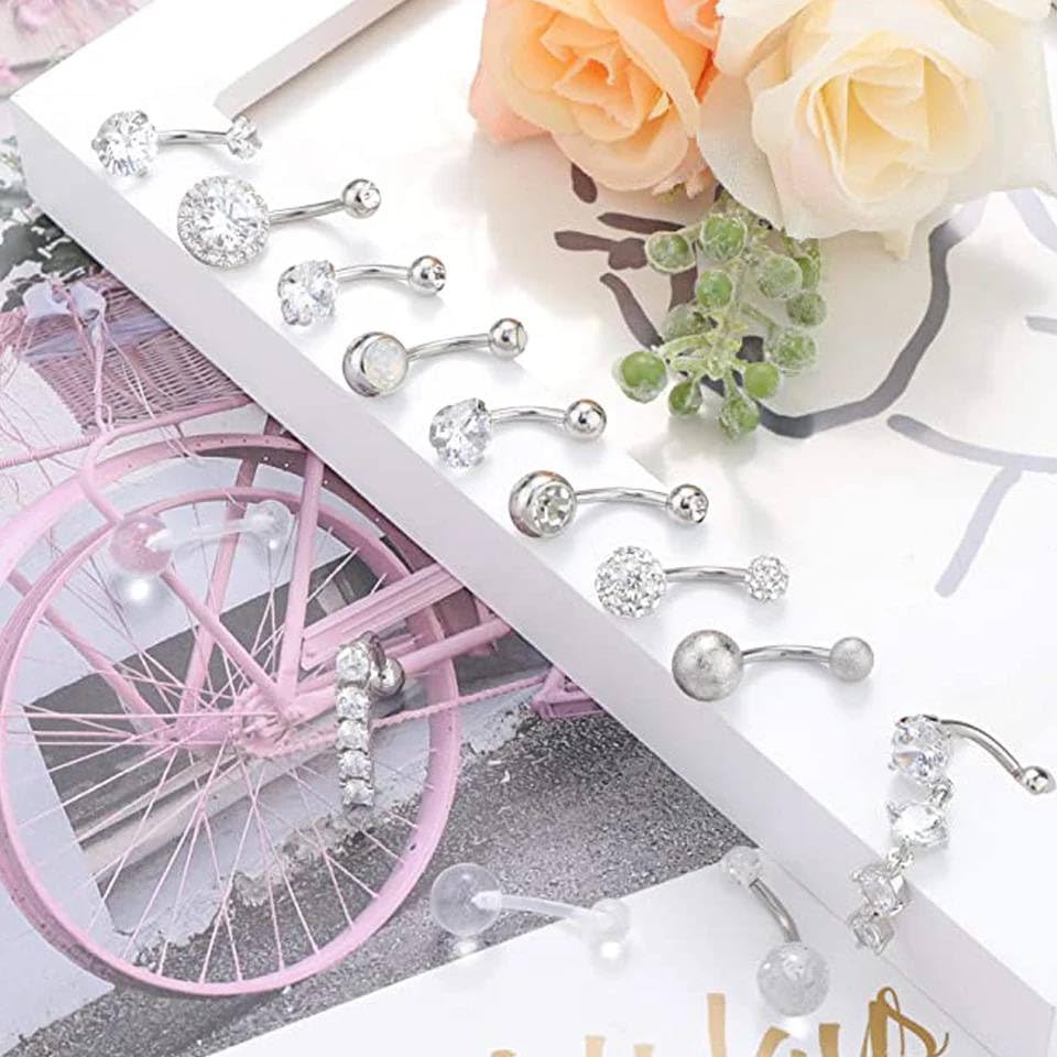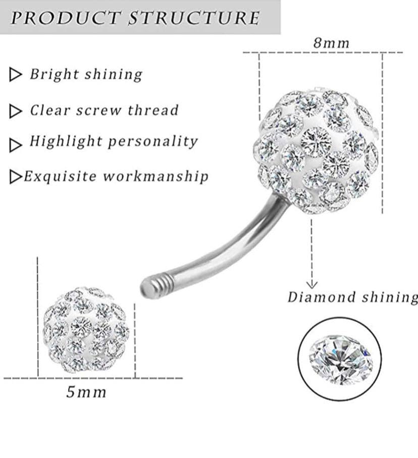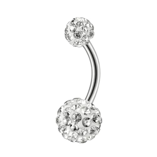 Generic - خاتم سرة بلون فضي مع كرات كريستال مزدوجة، خاتم سرة للبطن وثقب السرة، مجوهرات للجسم