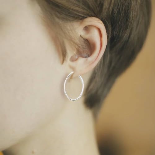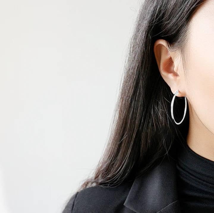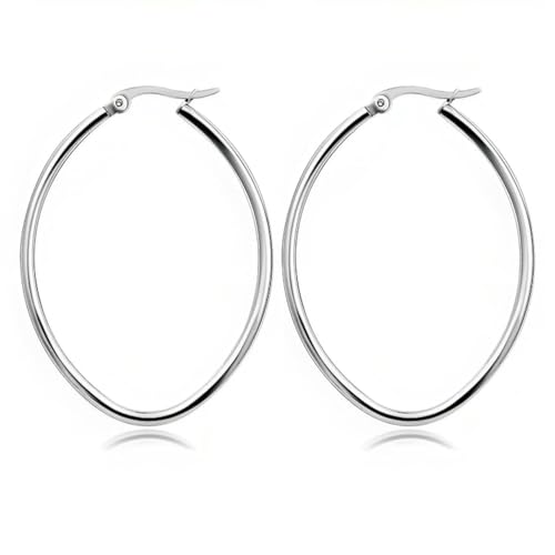Generic - Silver Color Oval Hoop Earrings For Women Ladies Korean Style Fashion Trendy Jewelry