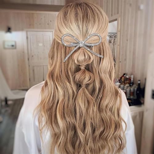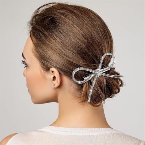 Rzcin - مشابك شعر فضية للنساء والفتيات مرصعة باحجار الراين اللامعة للشعر الطويل والقصير المجعد والرفيع، مشابك شعر فرنسية كبيرة لامعة على شكل تمساح، اكسسوارات تصفيف الشعر لحفلات الزفاف