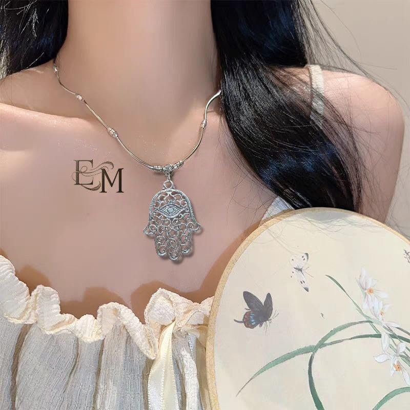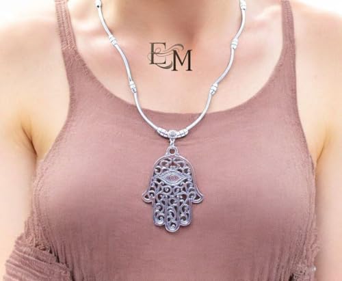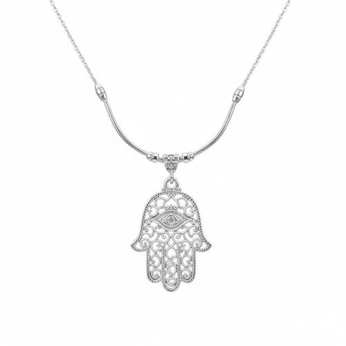 Generic - Silver Hamsa Hand Evil Eye Pendant Necklace, Filigree Design, Chain with Beads
