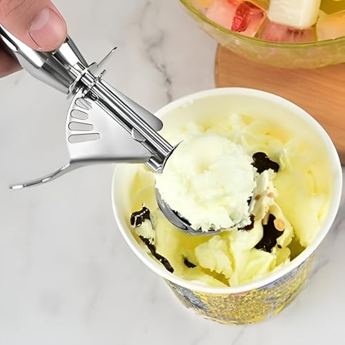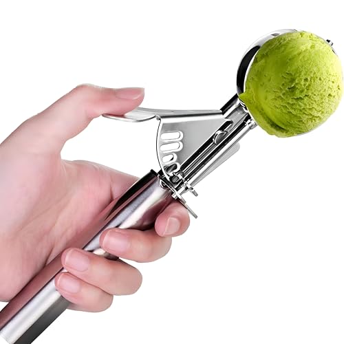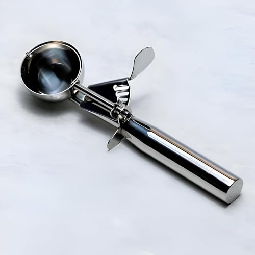 - Ergonomic non‑slip handle with a trigger lever reduces wrist strain, allowing effortless scooping of ice cream, cookie dough, meatballs or melon balls.