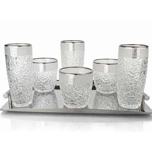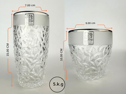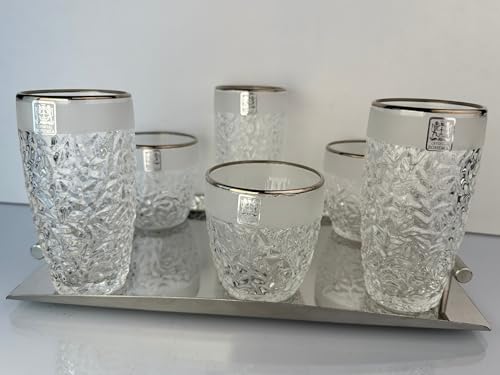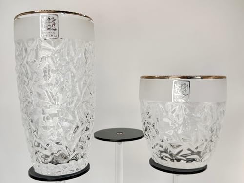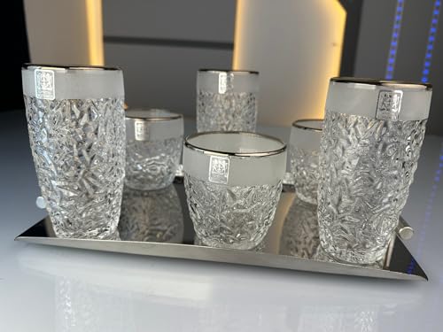 Generic - Silver Plated Bohemian Crystal Tumbler Set, 12 Pieces, Embossed Design, Clear with Silver