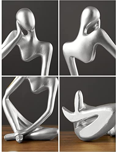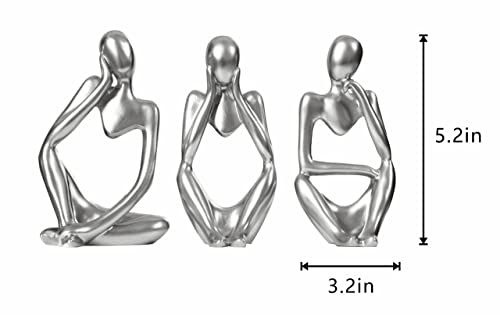 JKUDTQL - Silver Sculpture 3 Pcs Thinker Statue set Abstract Sculptures Home Decor Modern Small Silver Statues Decor Accents for Bookshelf Coffee Table Shelf Desktop Office Decor Collectible Figurines Decor