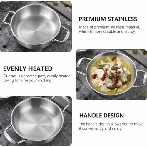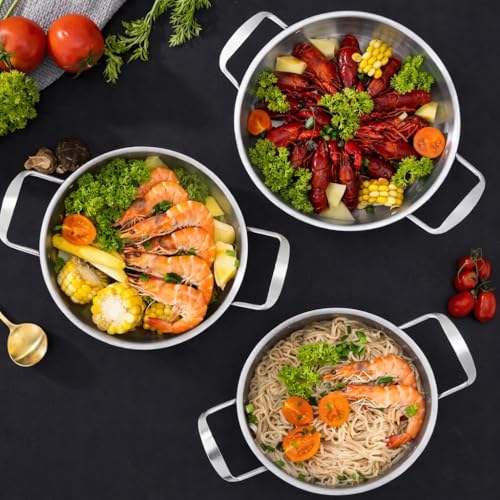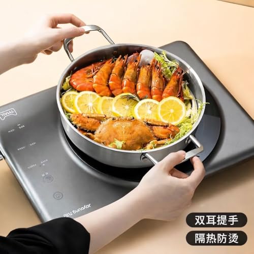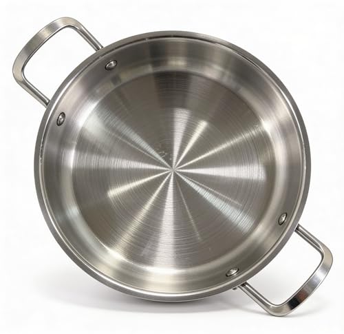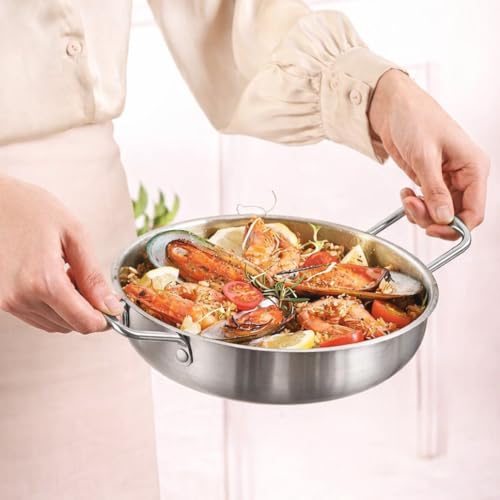 Generic - Silver Stainless Steel Cooking & Serving Pan 26cm – Heavy Duty Professional Frying Wokwith Double Handles, Durable Brushed Finish, Imported Premium Cookware.