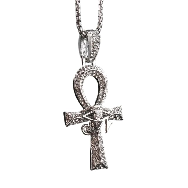 Generic - Silver-Tone Ankh Eye of Horus Pendant Necklace with Cubic Zirconia Accents – Elegant Symbolic Statement Jewelry