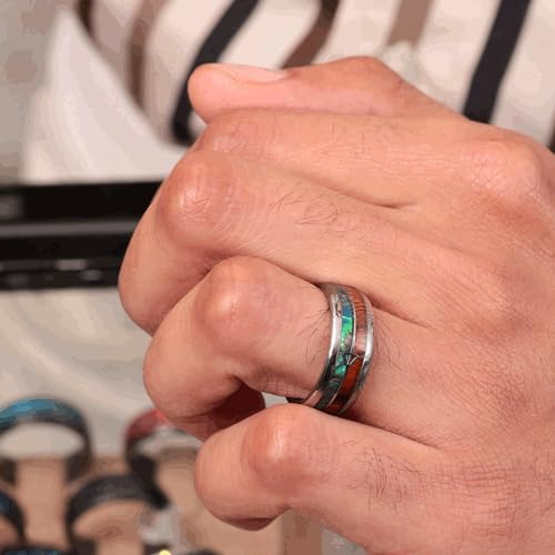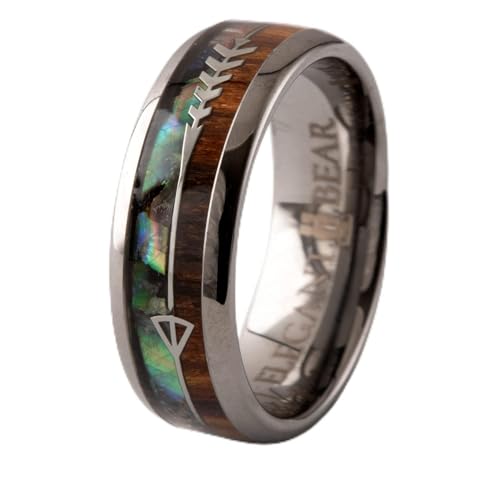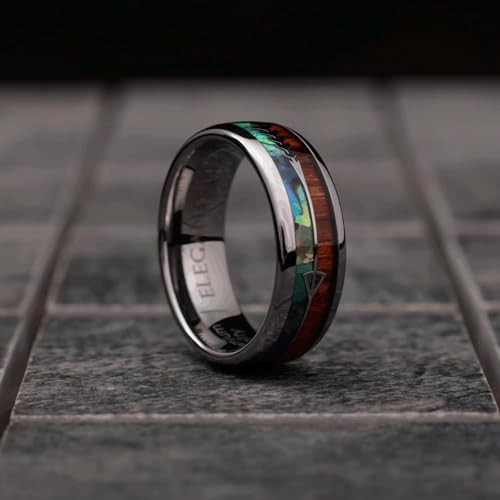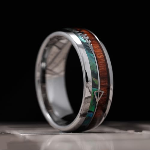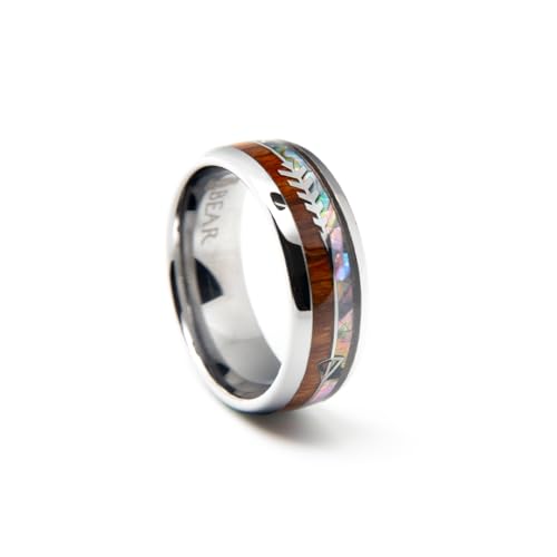 Elegant Bear - Silver Tungsten Carbide Ring inlaid with natural koa wood and abalone shells A125