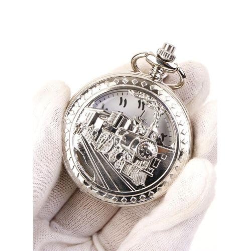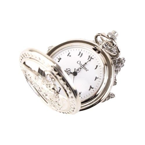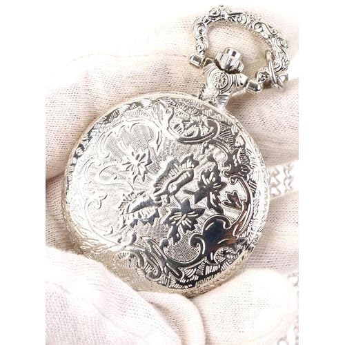 Generic - Silver Vintage Bronze Clamshell Simple Carved Necklace Quartz Pocket Watch Gift For Male And Female