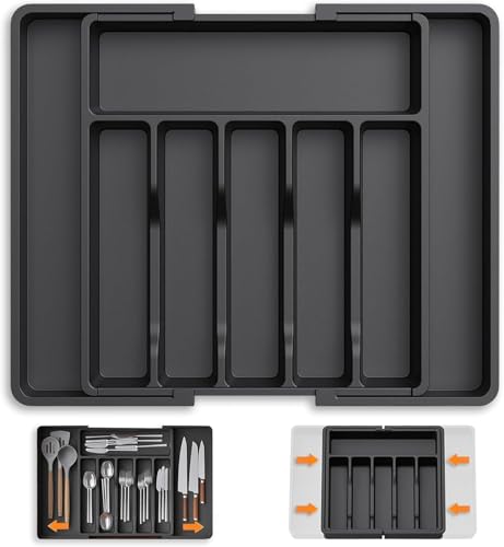 - ✅ 【MAXIMIZED SPACE】: With 5-7 compartments, this cutlery drawer organizer creates ample space for silverware, utensils, and kitchen tools. Its installation-free design makes it a convenient drawer kitchen utensil organizer—just place it in the drawer and let it work its magic.