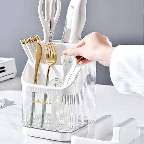 Generic - Silverware Storage Organizer - Spacious White Plastic Tray with Three Separate Compartments for Utensils, Pans, Silverware, Ideal for Kitchen Countertops