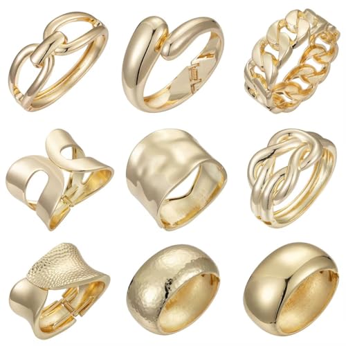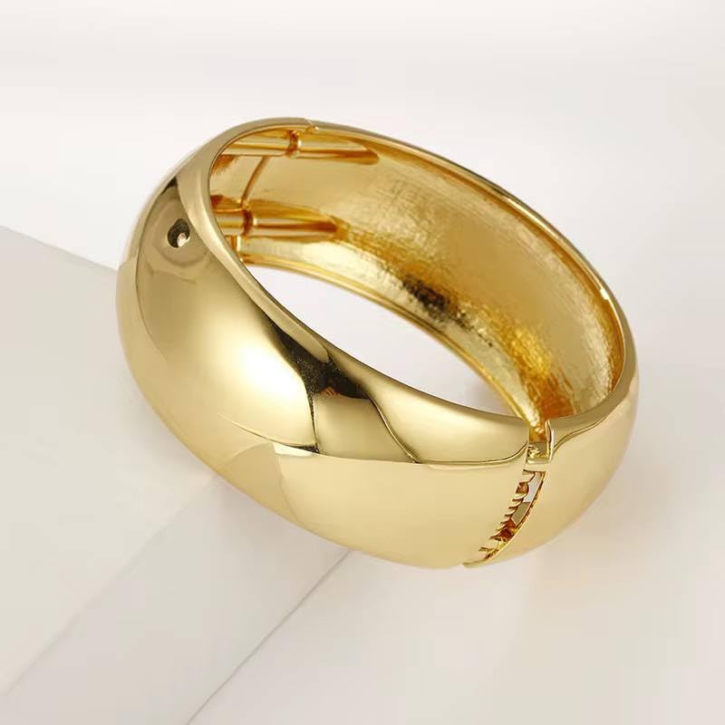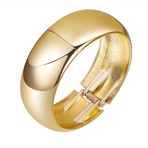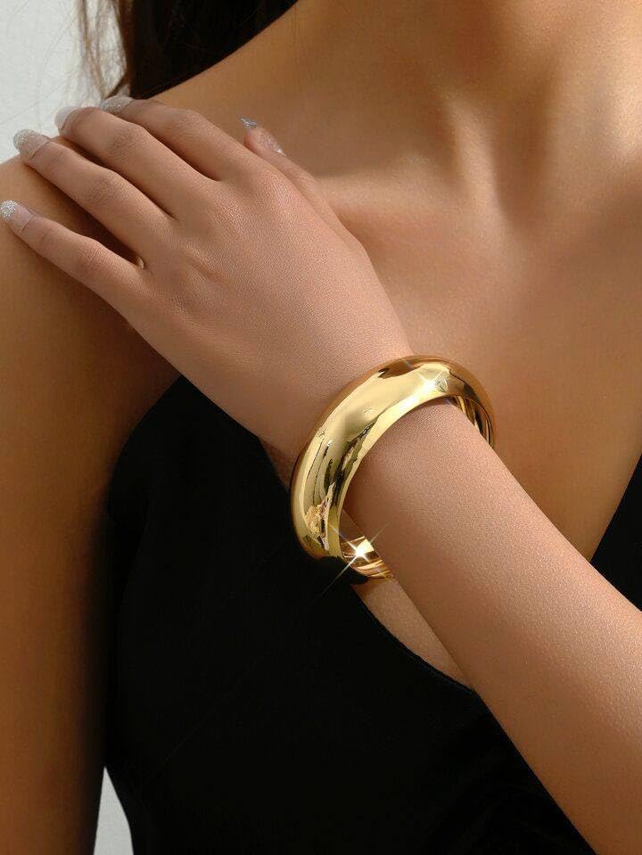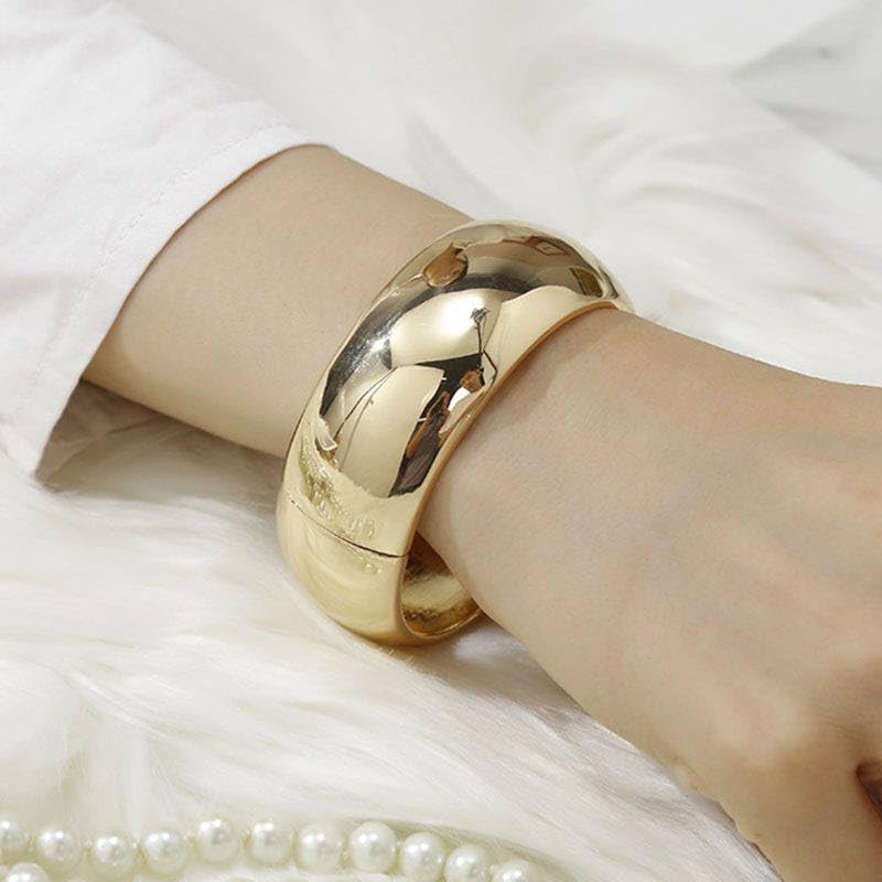 Generic - Simple Fashion Heavy Metal Chunky Round Cuff Wide Bangles Punk Geometric Gold Color Bangles Women Men Bracelet