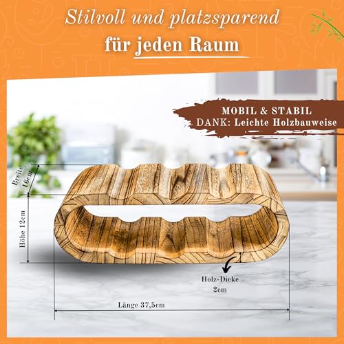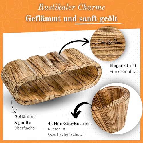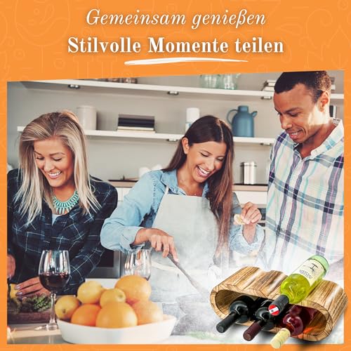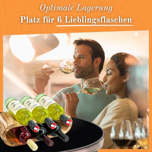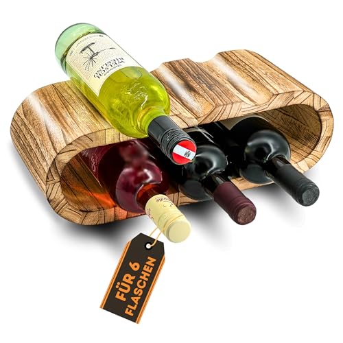 SIMPLEX DOMO - Rustic Wine Rack Wood Flamed - Bottle Rack Wood for 6 Bottles, 2 Levels - Timeless Design, Gently Oiled - Narrow Wine Rack for Kitchen, Dining Room, Living Room