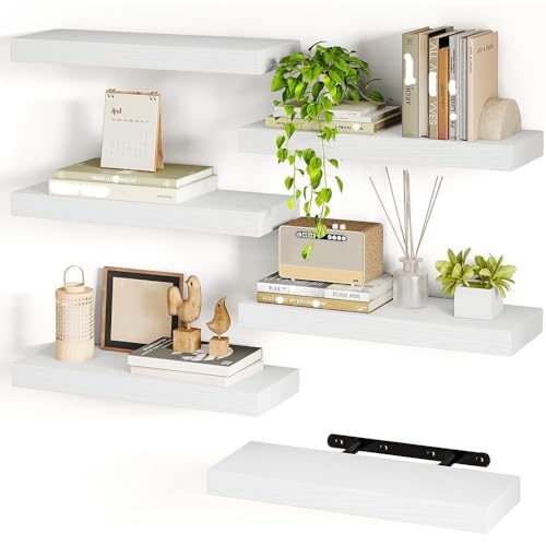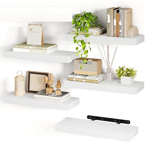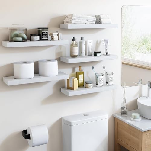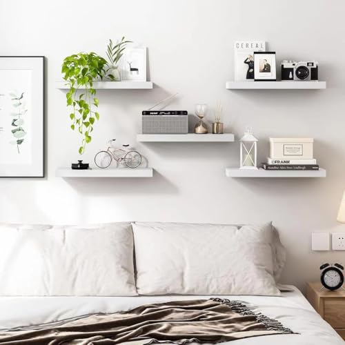SIMYFOIN - مجموعة رفوف عائمة متعددة الاستخدامات من سيميفوين: باولونيا طبيعية وخشب صناعي وأنماط ريفية بمقاسات متعددة (5 مجموعات) - للحمام وغرفة المعيشة وغرفة النوم والمكتب المنزلي، لون ابيض