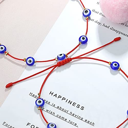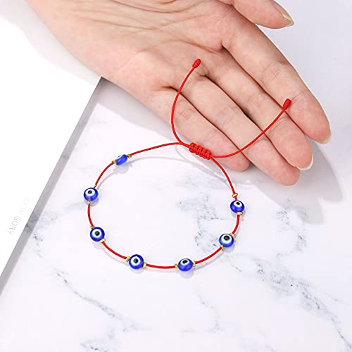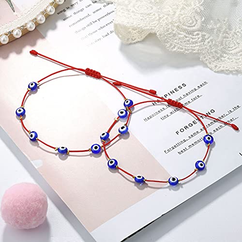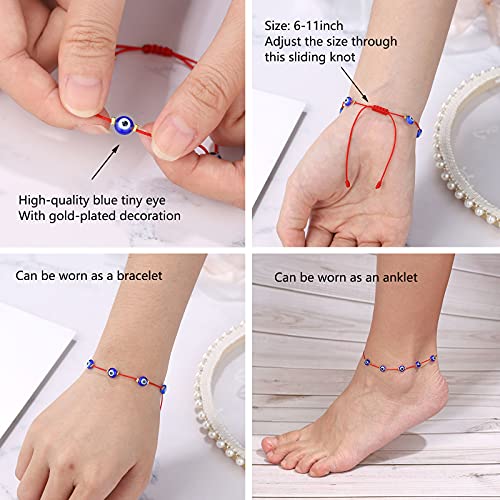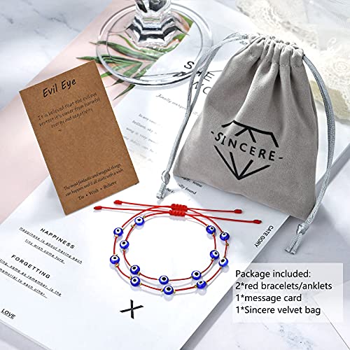 Sincere - Sincere Tiny Evil Eye Adjustable Bracelet Anklet, 2 PCS Red/Black Waterproof Protection String Bracelet Amulet for Women Men Couples Friend Family, Nylon, cubic zirconia,