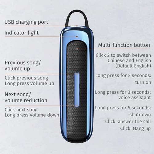 Generic - Single Ear Earbuds, Long Battery Life, Bluetooth 5.3 Wireless Headset, 12H Talk & Music, HD Audio, Built-in Mic, Waterproof, Fast Charging - BH109 Original