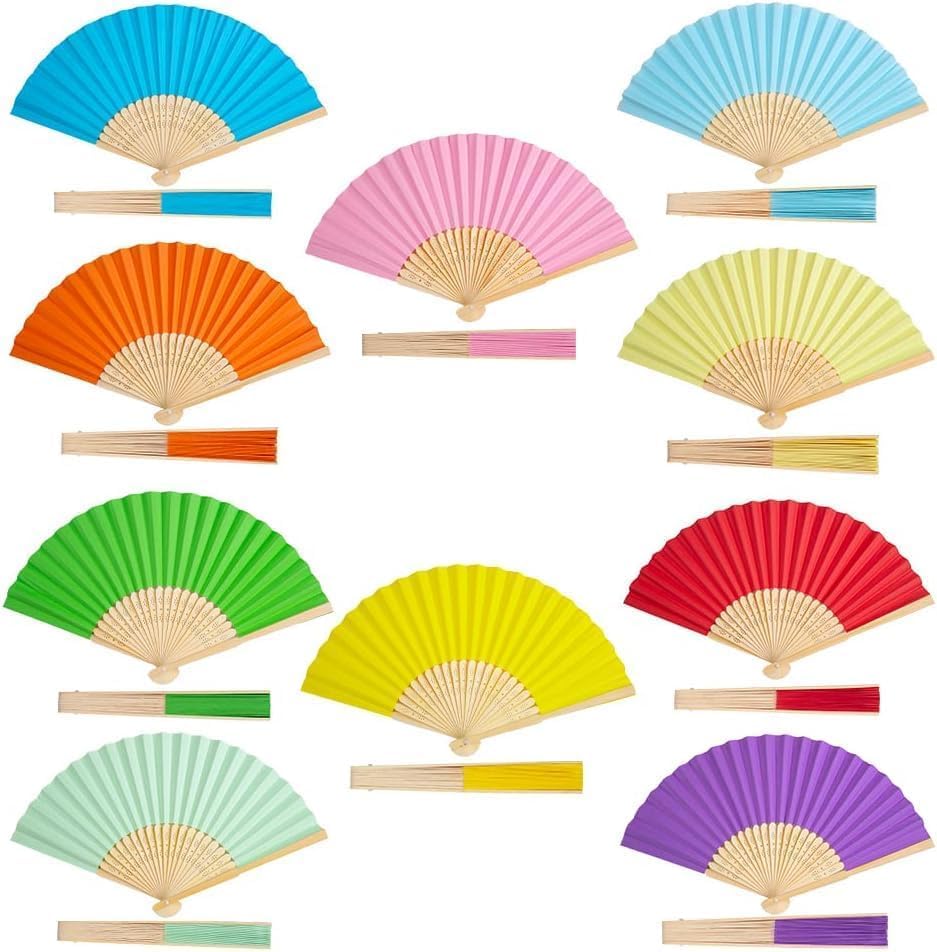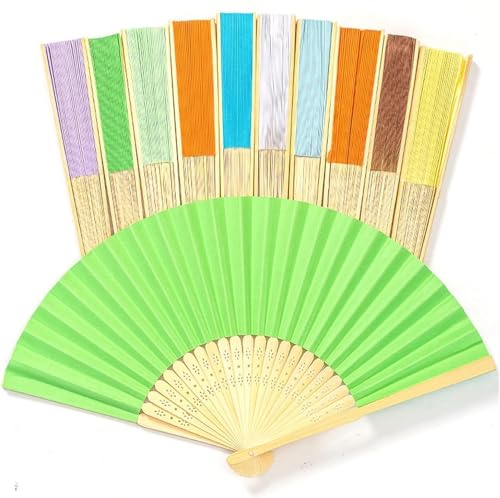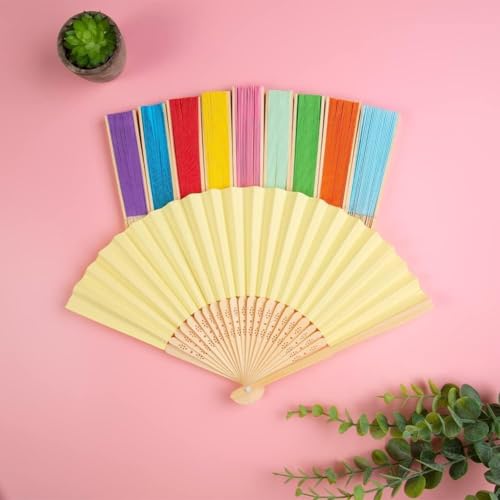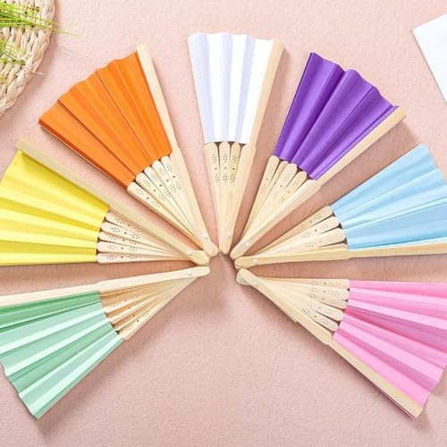 Generic - Single Paper Fan with Wooden Handles - Folding Hand Fans for Women, Kids, Wedding Guests, Party Favors, Dance Shows, Birthday Celebrations, Festive Events, Multicolor