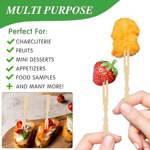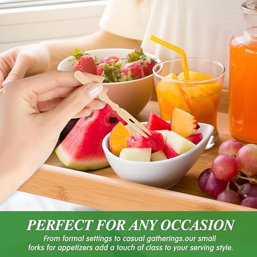 - These bamboo forks elevate the visual appeal of any food display, adding a rustic, natural aesthetic that enhances party décor and aligns with modern eco-conscious trends.