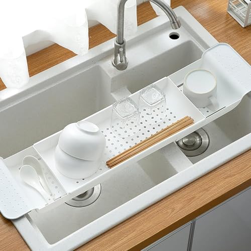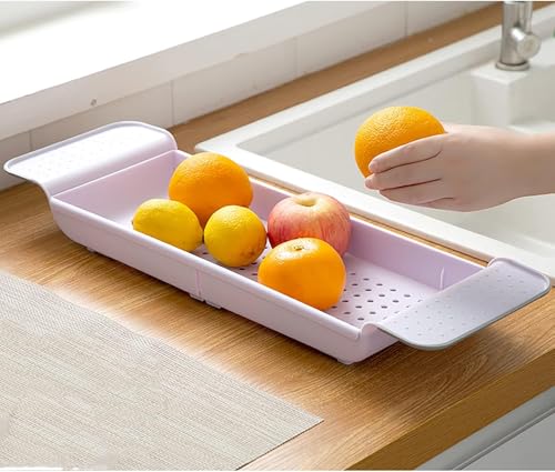 - ✅ 【قابلة للتمدد】 تصميم مرن يتناسب مع أي حجم حوض لغسيل الخضروات والفواكه بكفاءة.