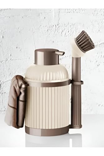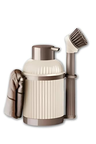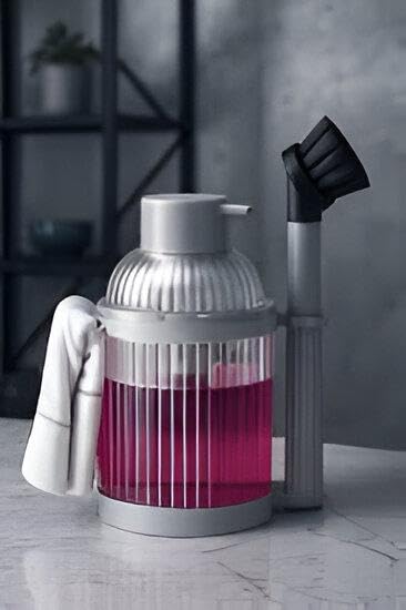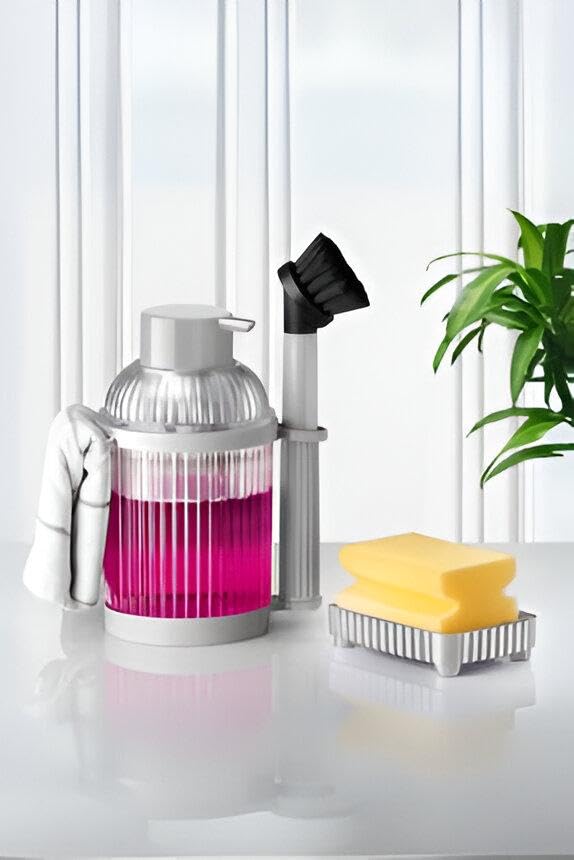 - تأتي مجموعة المنظفات والصابون السائل المصنوعة من الأكريليك هذه مع فرشاة وإسفنجة، مصممة للاستخدام في كل من المطبخ والحمام؛ وتتميز بخطاف مخصص لتعليق القماش، وفتحة لوضع الإسفنجة، ومظهر أنيق بشكل عام يحافظ على المنضدة منظمة وجاهزة لمهام التنظيف اليومية.