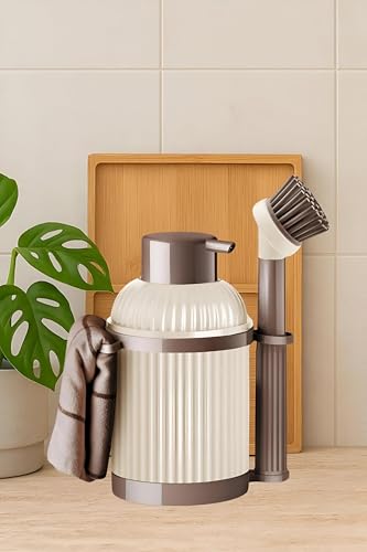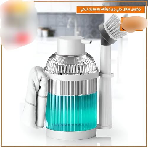 Generic - أداة لحوض المطبخ تتضمن موزع صابون مع فرشاة مدمجة، مصممة لتنظيف الأحواض والمصارف وأدوات تناول الطعام المعدنية بسرعة، مزودة بمقبض سهل الإمساك متين، مع لمسة نهائية حيوية وملونة