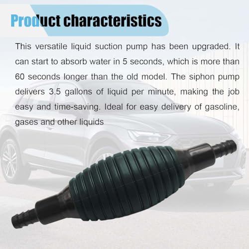 - 【Efficient Liquid Siphon】:This gas siphon hose pump comes with 9.84 feet of hose for easy reach into containers. The siphon pump delivers 3.5 gallons of liquid per minute for efficient liquid transfer, helping you complete liquid changes quickly.