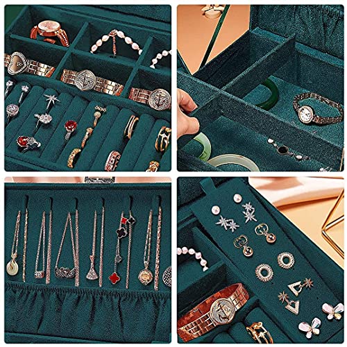 Sisliya - صندوق تنظيم مجوهرات مع درجين وقفل وثلاث طبقات من المخمل مع علاقة للعقود واقسام قابلة للازالة للخواتم والحلقان والعقود والاساور من اي سبورتيك
