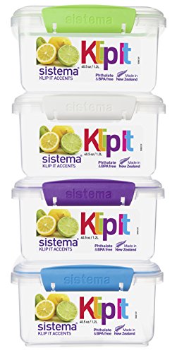 Sistema - Sistema KLIP IT Accents Food Storage Container, 1.2 L - Assorted Colours