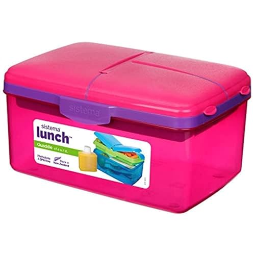 Sistema - صناديق طعام لانش بوكس كوادي من سيستيما، 2 لتر، لون بينك، بلاستيك، متعدد الألوان