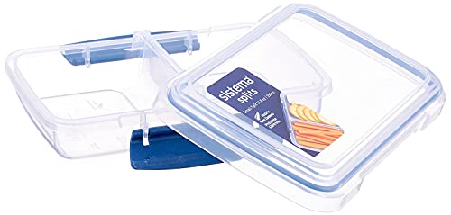 Sistema - علبة لحفظ الطعام بفتحة صغيرة من سيستيما، 350 مل - ازرق داكن وشفاف