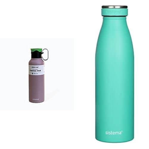 Sistema - Sistema stainless bottle traverse 600 ml - pink + Sistema stainless bottle hydrate 500 ml - mint